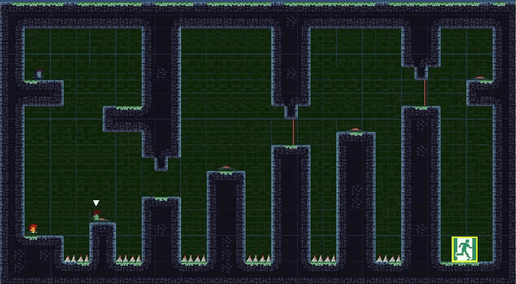 3 characters swap at different positions at point "A" and have to navigate to point "B" to the gate to the