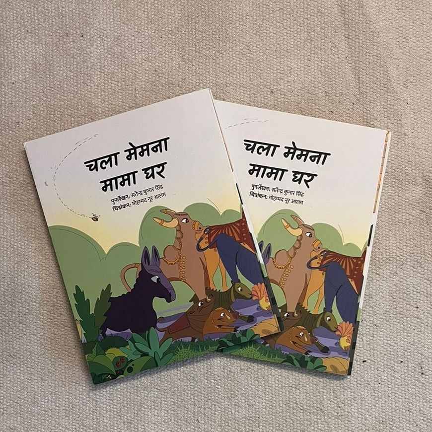 Make a children book on the "memna chala mama ghar" written by "Satendra Kumar Singh".
