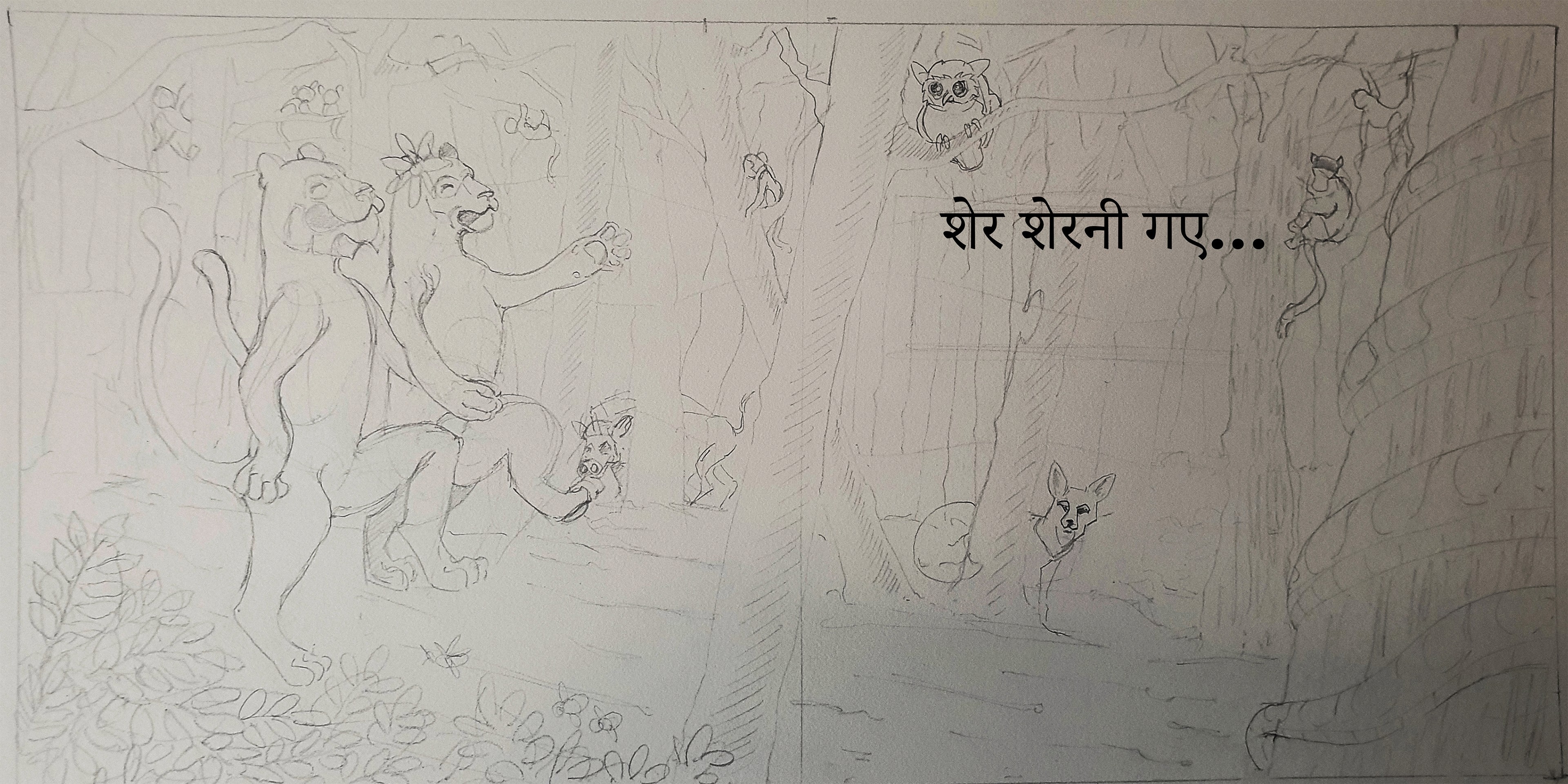 Make a children book on the "sher ki poo" a peom written by "Prabhat".